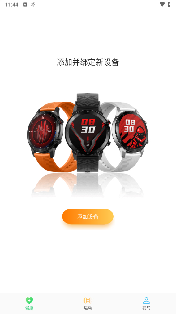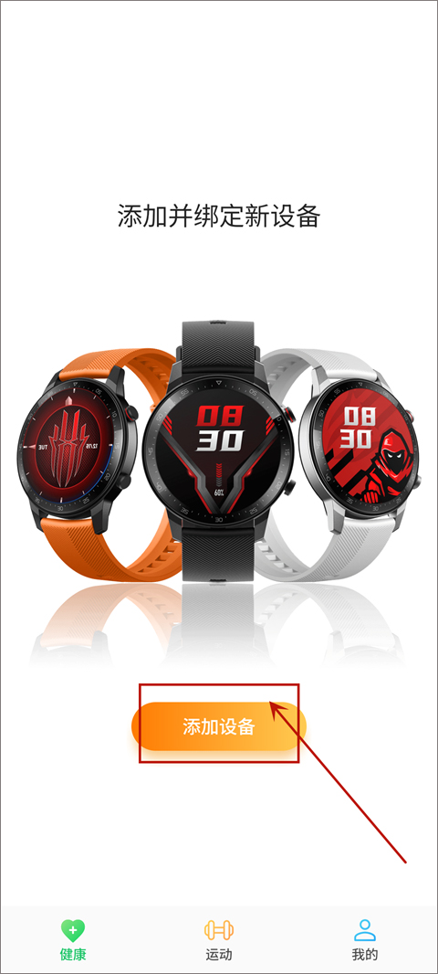 1、打开红魔运动手表app,在健康或运动界面添加你的设备;