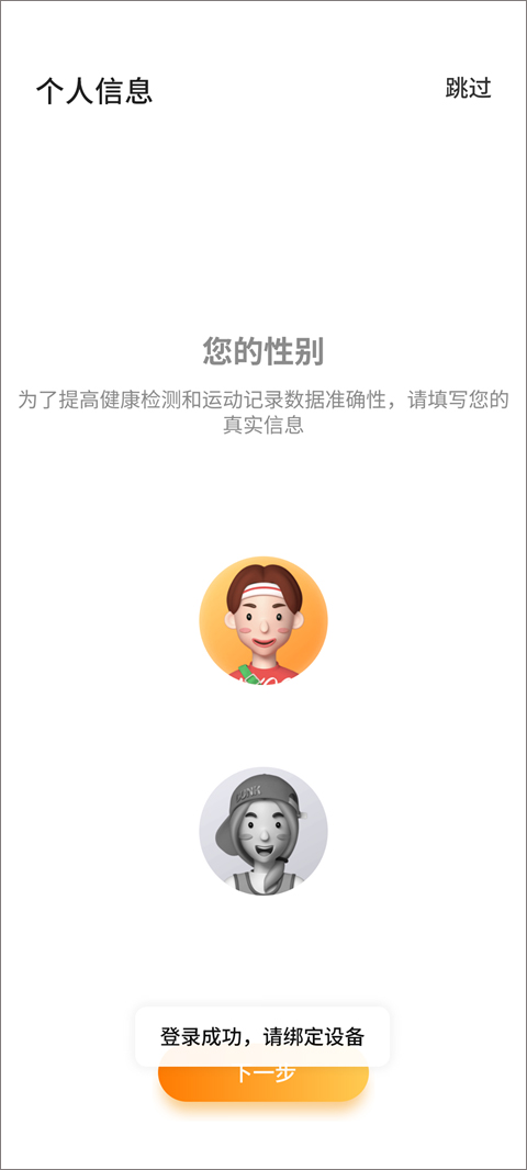 3、需要根据系统的提示完成基本信息的填写,比如性别、身高、体重等等,如实填写即可。