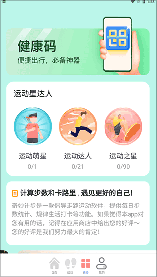 奇妙计步app是一个在线计步的服务软件,可以让用户们在平台里给自己制定一个合理的健身计划,能够迅速的提升自己的身体素质,用科学的方式帮助用户快速瘦身,还给我们精心准备了独特的食谱,让我们快速的摄入不同的营养,保持运动时良好的身体状态。另外软件每天还可以查看不同的运动攻略,更好的学习锻炼自己的身体。软件还带有健康码,出行时可以非常的方便,还带有许多的事物的功效与作用讲解,更好的让用户在吃的方面保持着良好的健康,有需要的朋友快来下载体验吧。
