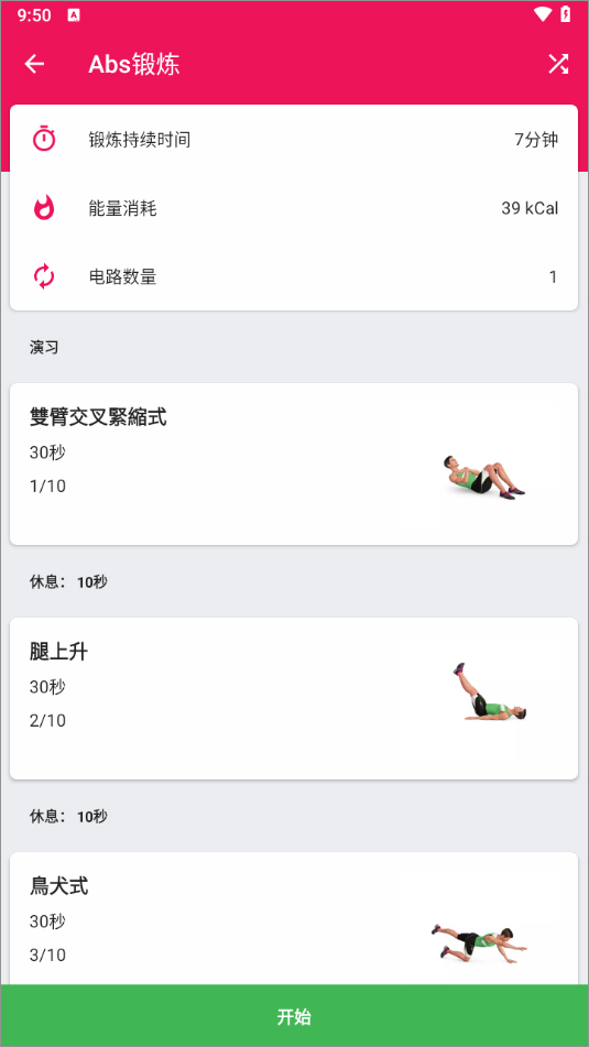 - 详细的统计数字,包括消耗的热量和锻炼的复杂性。