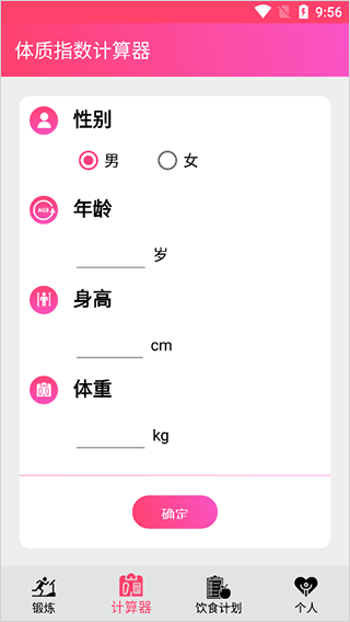 1、点击下载和安装掌上健身教练身官方版,打开后进入个人页面填写个人资料。