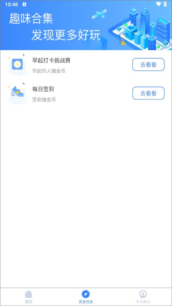 3、在赏金任务一界面,可以参与早起打卡挑战赛也可以参与每日签到赚金币