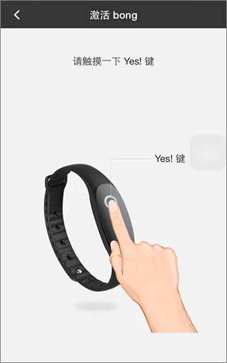 5、此时我们要打开手机蓝牙,然后根据提示触摸下手环的yes键知道手环闪烁;
