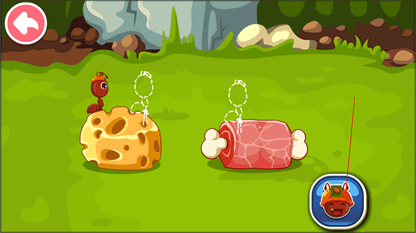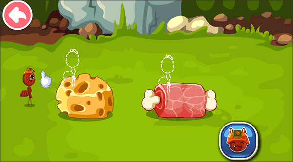 1、下载安装好宝宝巴士认蚂蚁游戏,进入游戏,将蚂蚁拖到食物的相应位置。