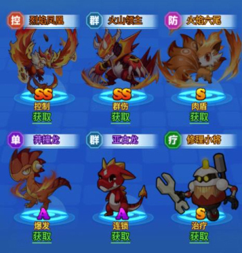 1、火系阵容亚古龙进化至SS可弹射5次,匹敌神兽