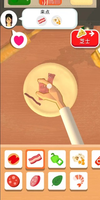 揉面之后自然要下配料了,做什么披萨就要什么配料,我们可不要画蛇添足,客人们需要什么我们就做什么,毕竟客户才是上帝嘛。当然配料这些需要我们花钱去解锁,如果你太抠门没有解锁相应的配料,缺斤少两的话客人对我们的评价也会相应降低。