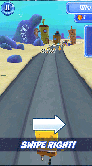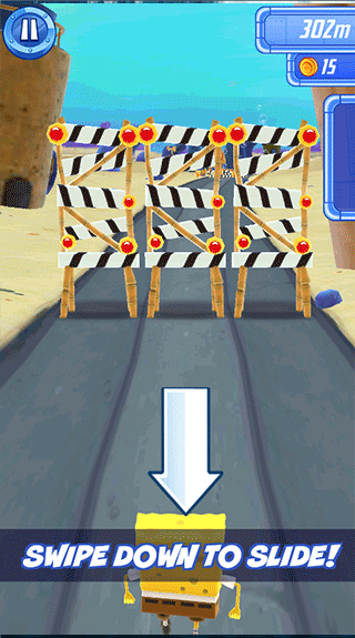 3、向左滑动,可以移动海绵宝宝到左边躲避障碍;