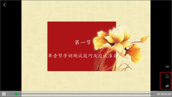 3、进入到视频播放界面点击右下角的按钮,倍速播放视频、切换到老师界面等功能。