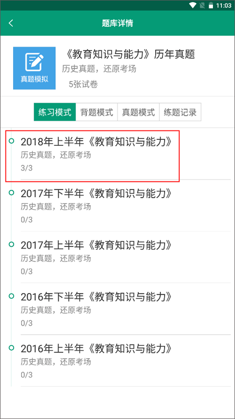 1、进入【题库->题库详情】,选择其中一个你已经做过的练习真题。