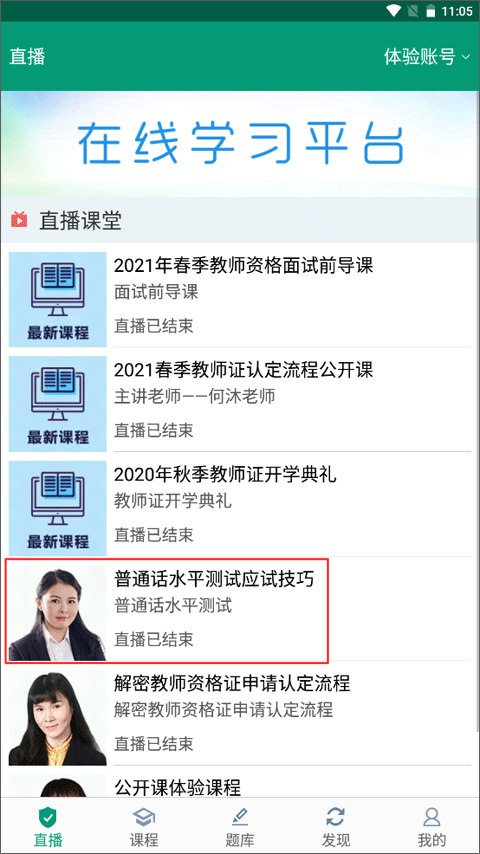 2、在直播详情页面中的课程表里,选择你想观看的录播视频。