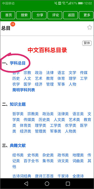 学科目录系统,主要当易是为用户使用本App提供具有科学体系的系统的条目查询指引