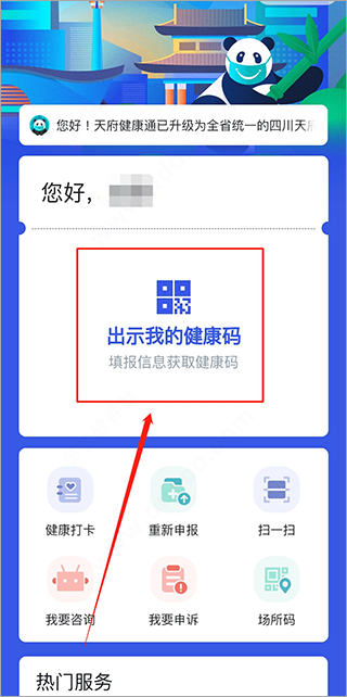 7、接着重新进入即可看到即四川天府健康通通行码