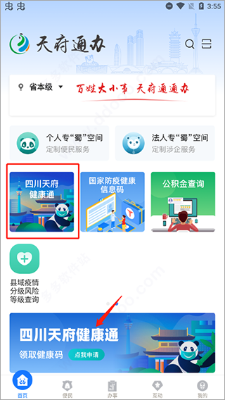 如今因为疫情的缘故,无论你去哪里都是需要使用健康码来进行出行的,而天府健康通app官方版是四川省人民政府办公厅专门为四川人民们提供的一款手机app,又名天府通办,在这里不仅为用户们提供了电子社保卡、个人办事、法人办事等全国一体化在线政务服务,最重要的是还提供了四川省全省统一的健康码,只要在这里注册填写信息即可轻松领取到天府健康通健康码。而且,在该软件中的这个二维码主要划分为绿色、黄色、红色、橙码、金色这五种颜色,主要有绿色二维码的用户即可自由出入公共场所,黄码则是疫数据核验无异常,但现场测温异常的健康状态,橙码是属于密切接触人员或疑似人员,红色则是为确诊和疑似病例的健康状态,最后金色的则是打了疫苗的标志。总之,为了个人安全和他人安全,以及便于疫情管理防控,大家有需要的则可下载该软件进行领取使用你的健康码。软件说明
