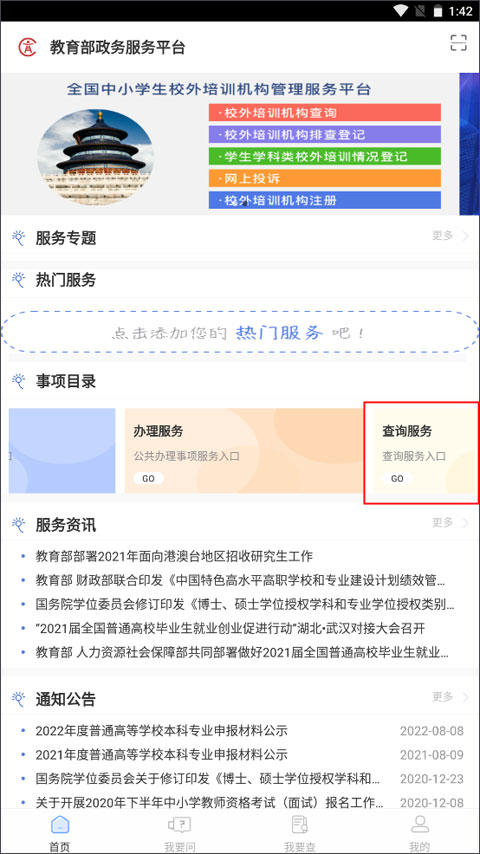 教育部政务服务平台app是中华人民共和国教育部指定的官方服务软件,里面包含了很多关于教育的信息资讯,涉及到小学、初中、高中、大学还有成人教育,每天更新大量的国家教育事务信息,让广大用户及时了解各种重要的教学动态,更好地关心我国教育事业的发展。