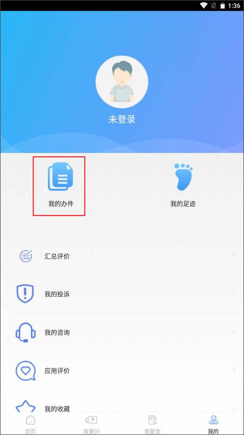 1、从【首页】切换到【我的】界面,选择“未登录”。