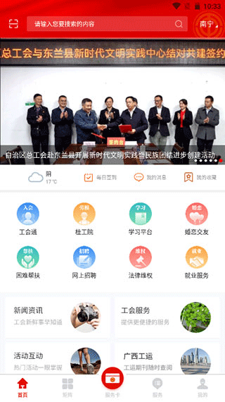 整合“广西工会”APP内所有服务项目,可通过该模块快速找到所需服务;