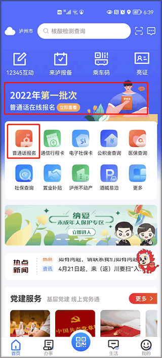 1、下载安装好酒城e通app,进入页面同意即可快捷“一键登录”APP(登录时请确认手机号),或者点击其他登录方式,支持“短信验证码、密码、微信”等多种登录方式。2、在软件首页,找到【普通话报名】服务并点击,然后点击【2022年普通话水平测试】进入。