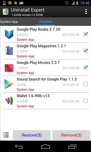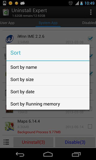 3、如果要卸载系统应用程序,就点击system app分类,但是要注意卸载,因为是系统文件