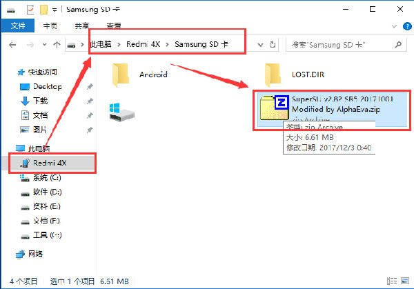 1、首先把 超级授权 SuperSU Pro 刷机包(注意是 .zip格式)放置你的手机内存卡或者内置存储里面