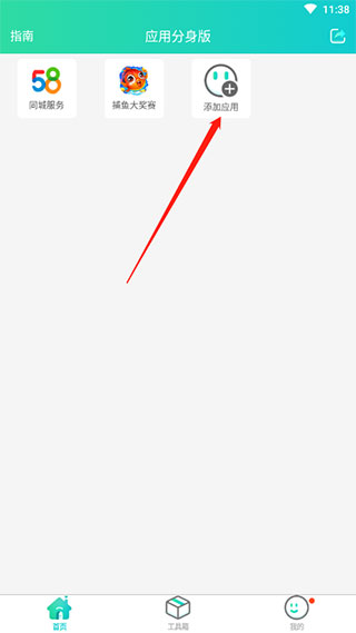 1、下载安装微信分身版安卓最新版官方版,运行软件,在首页有个添加应用,我们点击它;