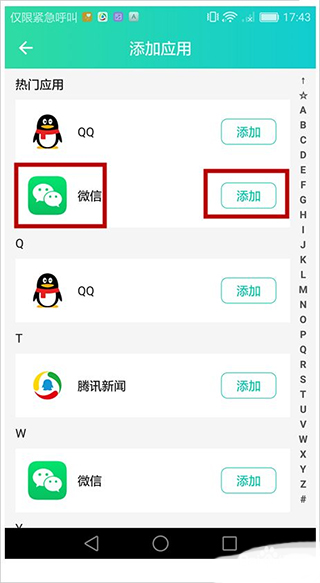 2、可以看到这里有我们手机上所有的应用,软件都是支持多开的,我们选择微信添加;