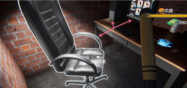 1、控制人物到电脑桌边上,然后用鼠标对着座椅或电脑,按E键就可以使用电脑。