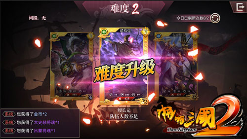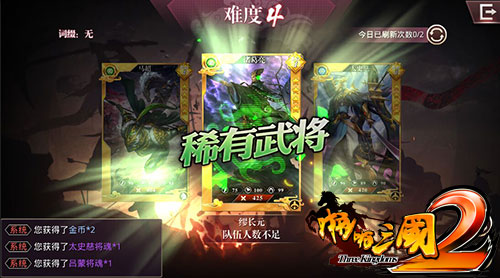 活动每日5点自动刷新武将,玩家每日可通过完成任务额外刷新1次武将。战斗胜利将掉落对应武将的将魂,每周活动结束后将根据玩家本周最高难度发放参与奖励;难度越高奖励越好。排行榜上玩家将额外获得一份稀有奖励。