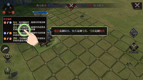 你有精炼弓兵,我便骏马出击,攻其不备;你有强悍长枪,我有长弓满月,箭无虚发;你有赤兔宝马,我便提枪上阵,挑落下马。兵种之间相克的微妙关系,往往左右着战局的动向。