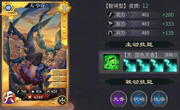小乔作为法师职业的强力武将,拥有独特的技能“国色天香”,不仅能大幅提升己方策略攻,还能降低敌方防御,是法师阵容的核心辅助。她的被动技能包括护盾、减伤和治疗效果,生存能力也很强。进阶后更能增强 BUFF 效果,提升整体战力。