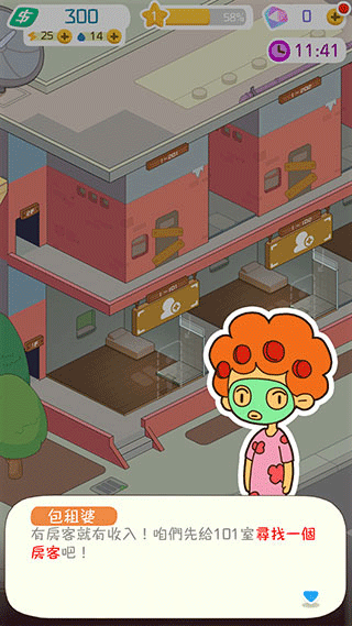 这款游戏叫“我要当房东”,玩法挺有意思的,就是模拟当房东赚钱。你可以每天收租,还能装修房子、管理设施,比如开个小卖部或者菜鸟驿站,吸引更多的租客。游戏里有不同的租客类型,他们需求不同,但你得用好服务来招揽他们。