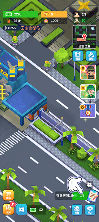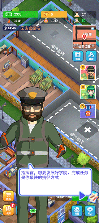 想打造自己专属的军事基地吗?想体验一场真正的军事模拟吗?那就来下载军校大亨游戏,这是一款模拟经营游戏,在这款游戏中你将以士兵身份从军队训练营起步,经营着一所军校,你没有时间停歇,因为你将经受各种考验,完成一系列训练挑战,从而顺利从军校毕业,为世界各地的军事行动做好准备。随着基地中的军事训练逐步进展,你将获得不菲的收入并扩张营地,玩家可以升级所有训练区的数值、速度、容量和队列规模,不断强化军校的设施,完成游戏发布的任务,这样才能提高学员素质能力,相信你会成为一个很棒的军事大亨。喜欢这类题材游戏的玩家,可以来本站下载安装体验一番。