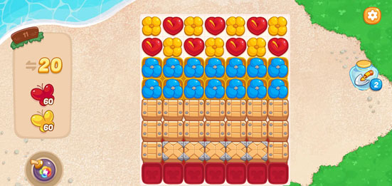 1、任务目标:红色蝴蝶*60、黄色蝴蝶*60、关卡步数:20步。