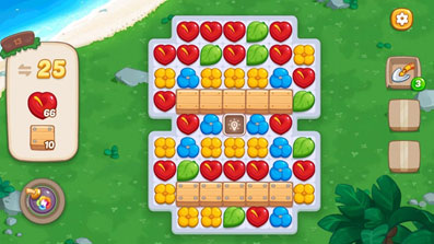 1、红色花朵*66,箱子*10、关卡步数:25步。