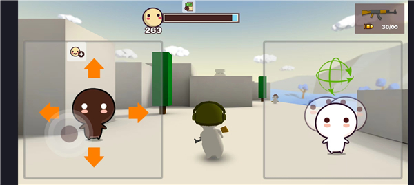 2、牛奶巧克力游戏采用了左右屏幕分开触控的操作模式,左边屏幕控制角色走位,右边屏幕控制角色瞄准,而射击则由系统自动完成;