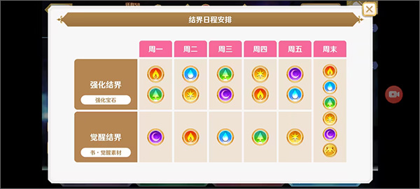 活动副本界面,在环试炼活动的下面,有两个结界。强化结界和觉醒结界,其中,觉醒结界掉落属性宝石和属性书。