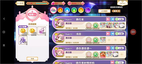 通过战斗获得道具及经验,可用于魔法少女的养成。