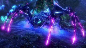 一共八只闪烁着幽幽紫光的小眼睛就紧贴它下腹处。它有着坚实的甲壳,奇快无比的速度,八条拥有着极强穿透力并且附带着剧毒的长腿,为可怕的是它的蛛网。