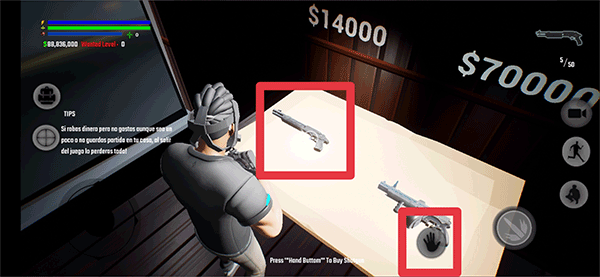 5、在武器店中你可以购买各种枪械,将视角对准枪械并点击手掌按钮即可获取