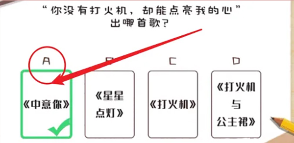 3、最后,继续选择答案A“中意你”即可完成关卡。