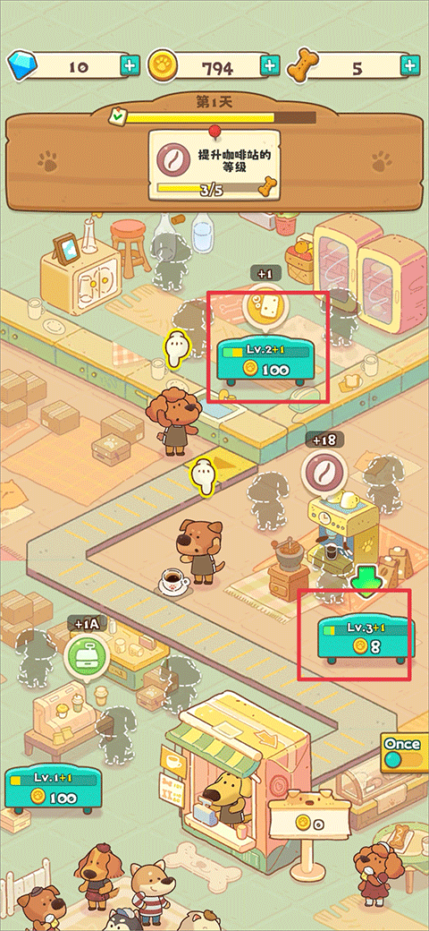 3、洗好的杯子会传送至咖啡馆,待负责做咖啡的小狗完成制作后点击即可送出