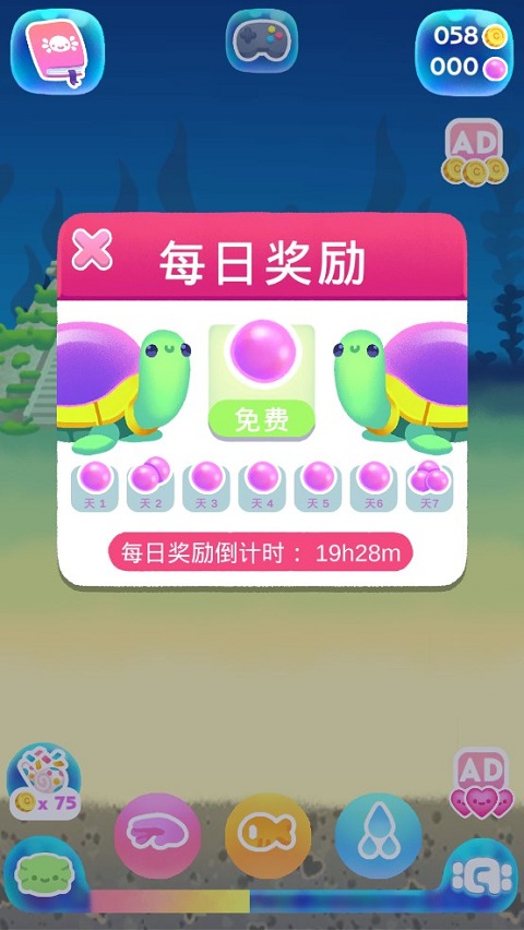 主画面上,多了一只水生生物乌龟,点击它并领取每日奖励。
