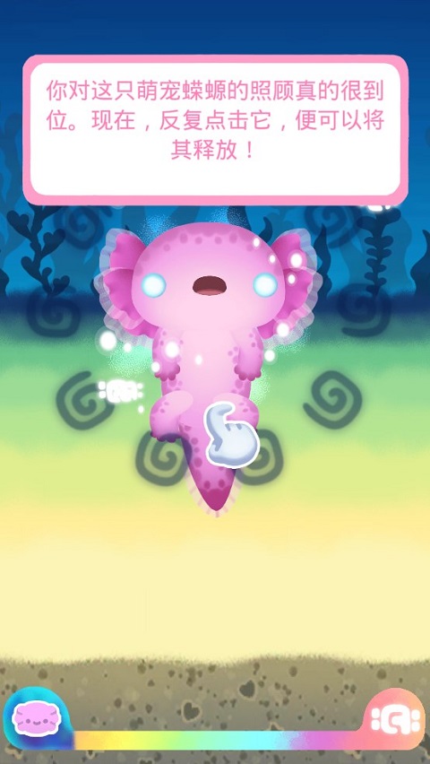 1、在这里玩家们可以照顾可爱的蝾螈,直到它们能够被释放到自然栖息地。蝾螈很喜欢人的抚摸,第一步玩家可以通过“手”的图标进行抚摸。具体操作方式,触屏滑动即可。