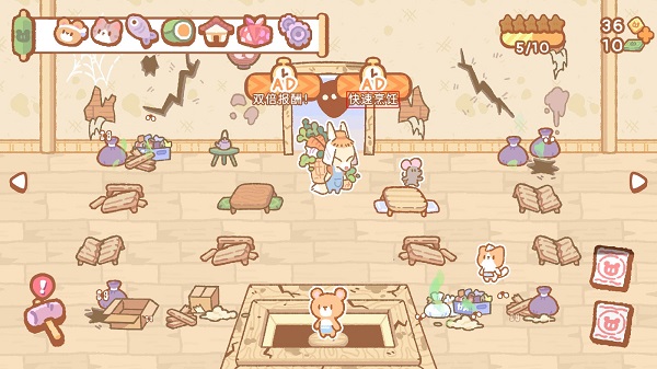 1、以可爱的小熊为主角,游戏中还有很多同样可爱的动物角色。