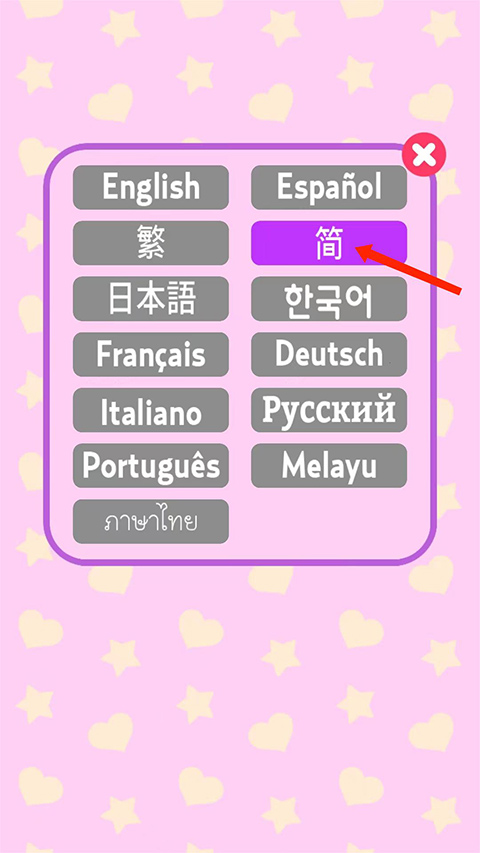 1、打开小偷独角兽游戏,首先选择语言,包括简体、繁体、英文、日语、韩文等语言,选择【简体】选项,
