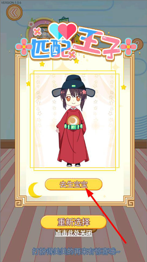 3、生宝宝需要匹配王子,随机选择一位王子和玩家体验生宝宝,王子选择好之后点击去生宝宝;