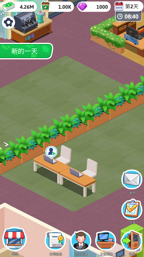 1、打开空闲办公室大亨中文版最新版,进入游戏如图;