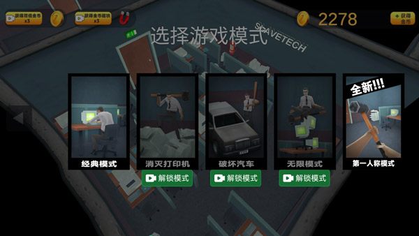 4、经典模式、消灭打印机、破坏汽车、无线模式以及第一人称模式,选择你想要挑战的游戏模式。