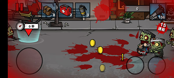 1、采用经典街机惯用的虚拟键盘操作,能够很容易上手,卡通风格的画面更加引人入胜。2、超凡脱俗的浴血奋战,就算是被包围了也没关系,绝对会让你爽到爆,还有超多道具可以帮助打僵尸。