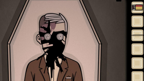 过去:输入排风扇上的时间场景发生变化,Albert的遗像摔在地上拿里面的钥匙开抽屉获得面具,在镜子前戴上面具,将墙壁上的图案顺序告知未来