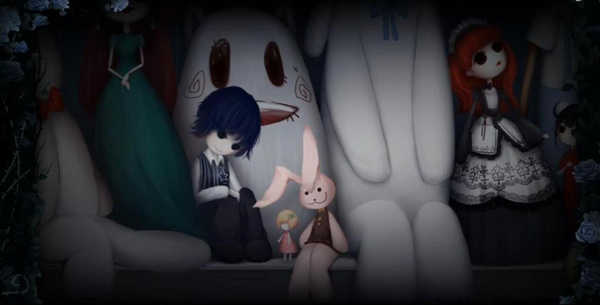 16、点击人偶舞台下面的兔子,获得毛绒兔子。(这个是给和式馆黑衣男孩的)